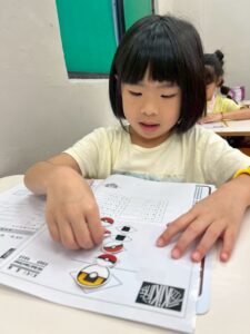 課堂上,數字變成關卡,孩子一顆顆撥珠,就像過一關又一關。過程中要專心、要敏捷,腦袋和小手一起動,左右腦齊開工!